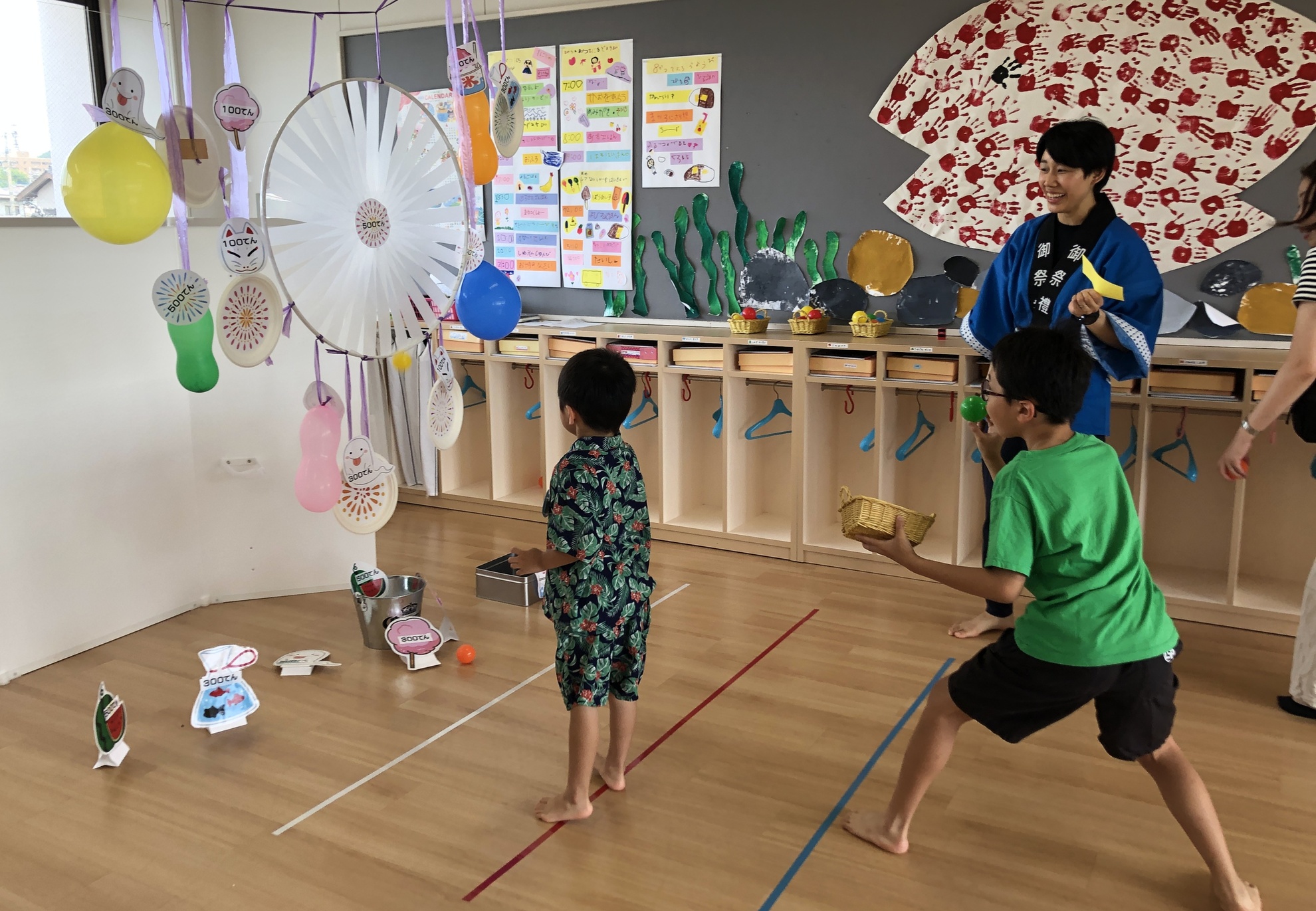 夏まつり 楽しみにしていた夏まつり。くじびきにヨーヨーつり、ゲーム等、保護者の方や友達と一緒に、夏を感じる楽しい時間になりました。自分たちで作ったうちわを持って、元気いっぱい盆踊りも楽しめました。 カテゴリー: 投稿日:2025年07月19日 前へ