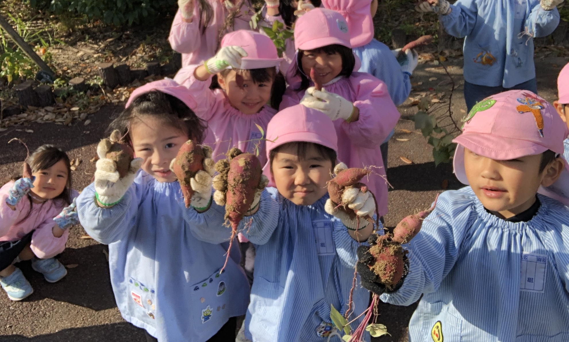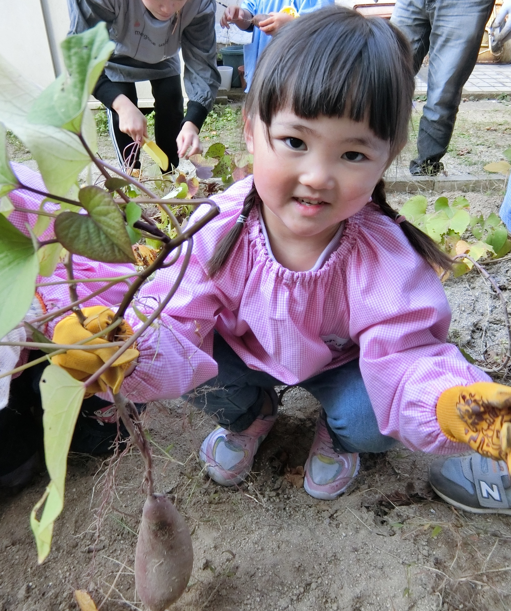 いもほり 6月に苗植えをしたさつまいものいもほりをしました。 今年は猛暑のため、いもの数は少なめでしたが、 「ここにありそうだよ」「一緒に引っ張ってみよう!」 とみんなで力を合わせて掘りました。 さつまいもだけでなく、ミミズや幼虫も見つけて 喜んだり怖がったりと盛り上がりました。 掘ったさつまいもは園でふかし芋にして食べました。 甘くて美味しいさつまいもに「おかわり!」とよく手が上がりました。 カテゴリー: 投稿日:2025年11月21日 次へ